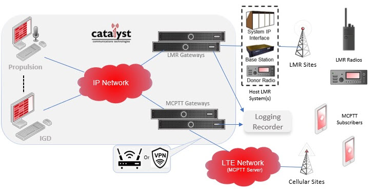 Catalyst Communications Technologies, Inc. provides mission critical dispatch solutions for public safety, government, utility, energy, and commercial markets throughout the United States and Canada. Our Radio over IP solutions are used for primary, back-up, and mobile dispatch and interoperability. Our preferred implementation in DMR radio systems is through our standards compliant AIS Wireline Interface which offers advanced control of radios through the DMR infrastructure, and we operate on Tier II networks through the RF interface using various control stations.